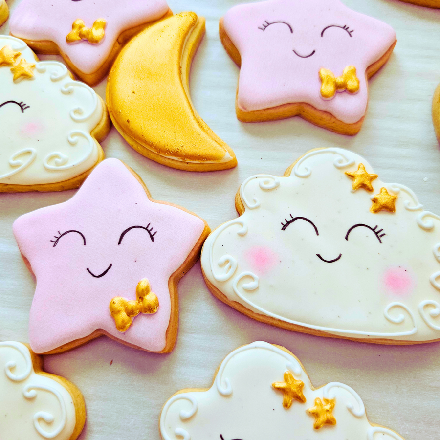Every cookie is baked fresh, decorated with care, and individually wrapped for freshness — making them the perfect centerpiece, favor, or gift. Whether you want classic elegance or playful designs, we’ll bring your vision to life in sugar and icing.